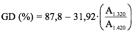 donde GD es el grado de desacetilación, A1320 el área de la banda a 1.320 cm–1 y A1420 el área de la banda a 1.420 cm–1. En todas las determinaciones por IR, es muy importante la selección adecuada de las líneas base en el cálculo de la absorbancia para alcanzar buenos resultados.