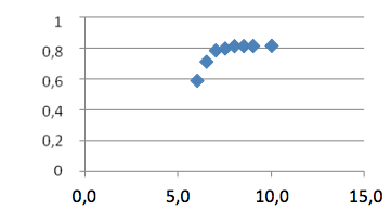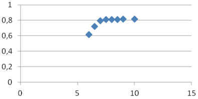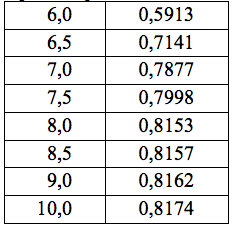 La adsorción se realizó en las siguientes condiciones para el quitosano Ch1020: se colocó 100 mL de disolución de colorante azul de metileno de concentración de 200 ppm, en un vaso de 250 mL, se trabajó por triplicado, luego, se añadieron 200 mg de quitosano, se agitó a 100 rpm, durante un período de 1 hora, pero se varía el pH desde 2 hasta 10 (ver Tabla 5 y Figura 4). De la gráfica se observa que el pH óptimo para adsorción es 7,5. A las mismas condiciones de trabajo para el quitosano calcáreo, estos resultados se observan en la Tabla 6 y Figura 5; de las cuáles se infiere que el pH óptimo de adsorción es de 8,0.