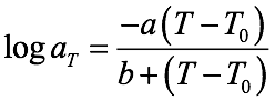 donde aT es el shift factor, a y b son factores que dependen del material, y T0, es la temperatura de referencia.